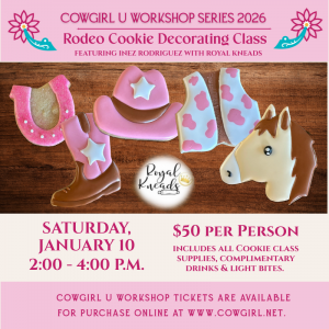 The Cowgirl will be closed Christmas Eve and Christmas Day. During the FWSSR, The Cowgirl will be closed to the public, January 17, 19 and 31 for private events. Museum Members receive FREE grounds admission to the FWSSR for the run of the show. Click Here to learn more.