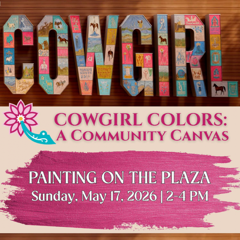 The Cowgirl invites you to participate in COWGIRL COLORS: A Community Canvas, a large-scale community art installation celebrating the spirit, history, and diversity of Cowgirls. The installation will appear on a temporary wall on Harley Avenue, south of the Museum, and will feature the word “COWGIRL” in bold, 5-foot letters composed of individual 8” x 8” wood panels painted by members of the community, just like you.